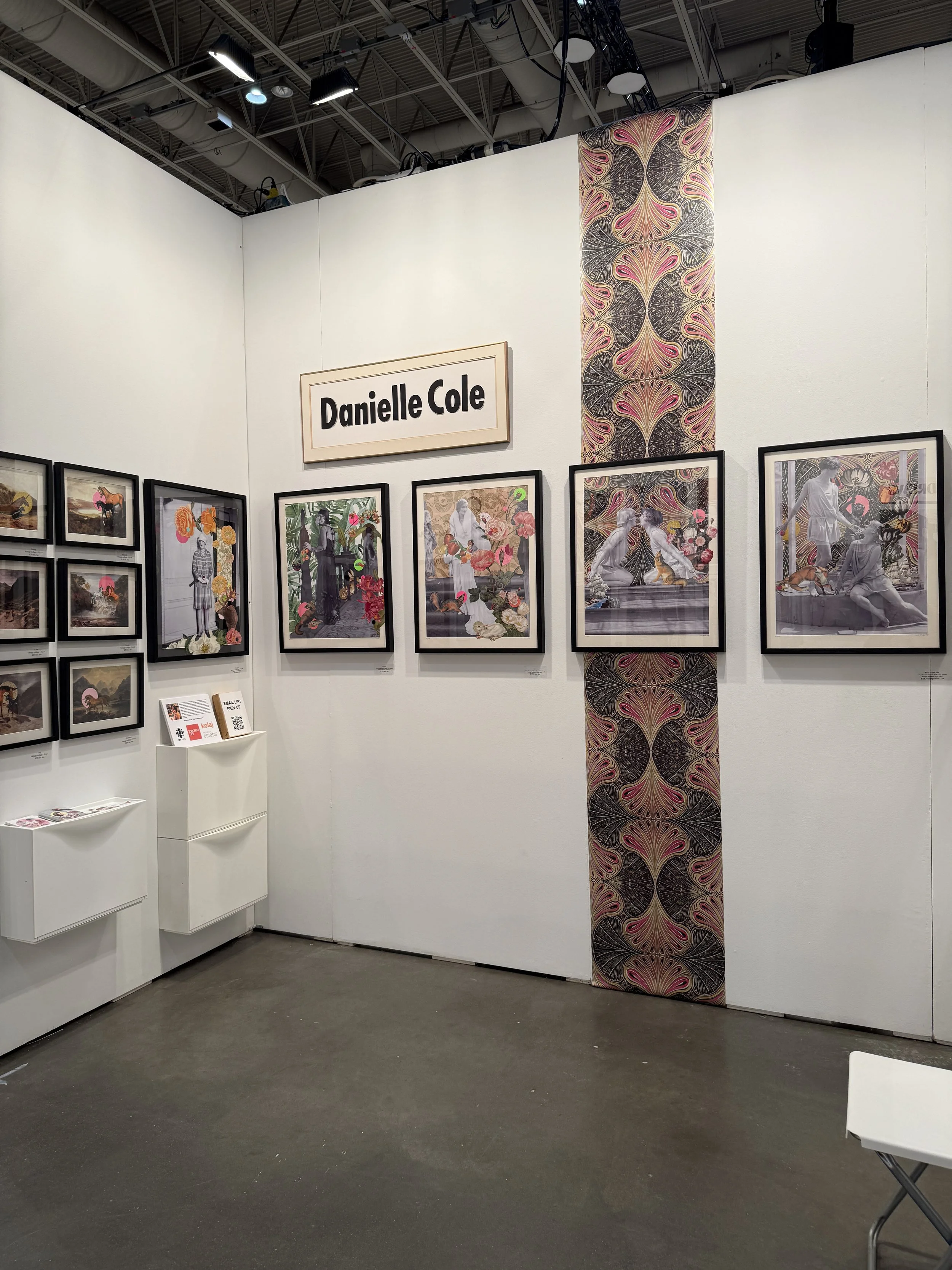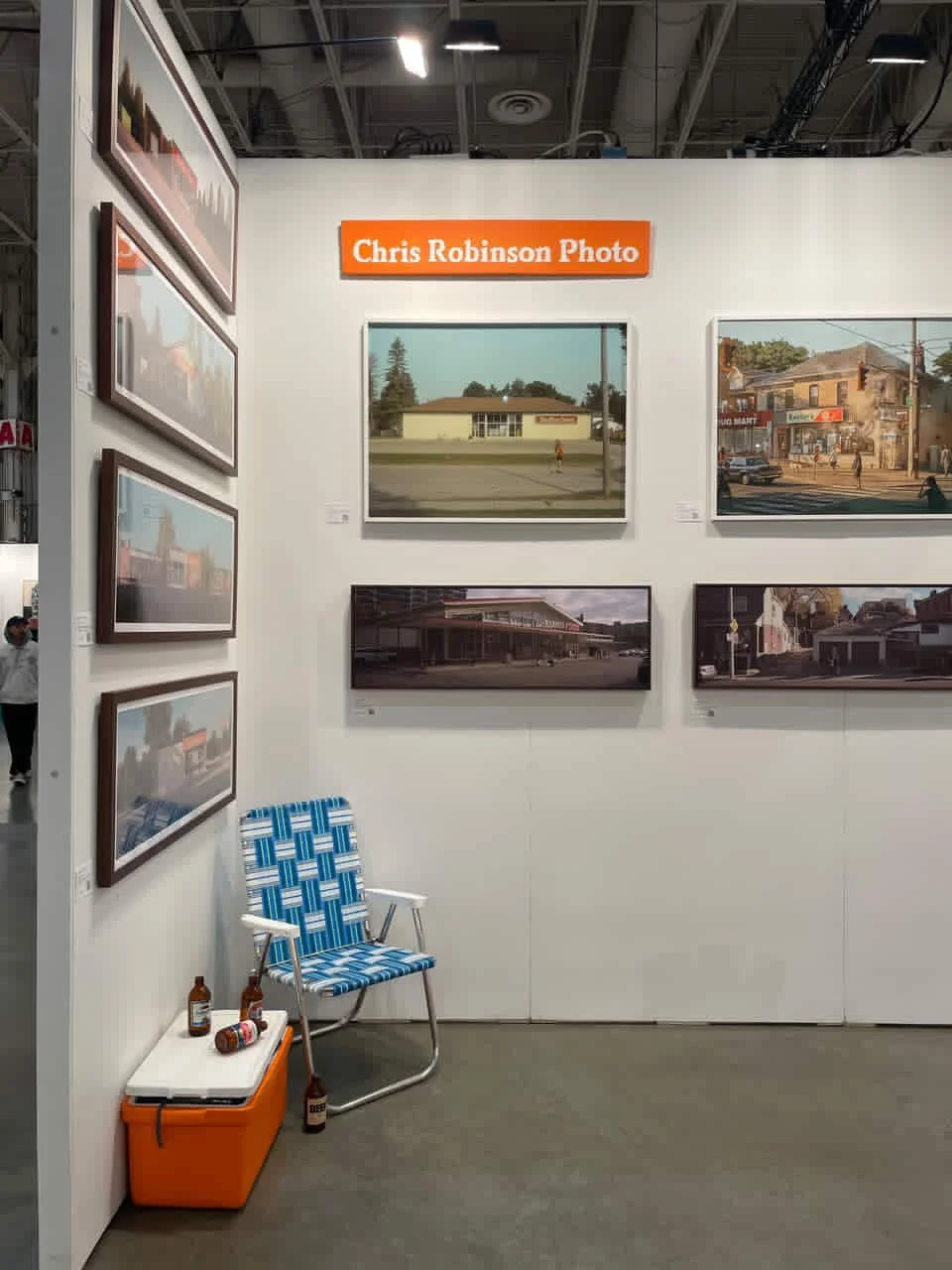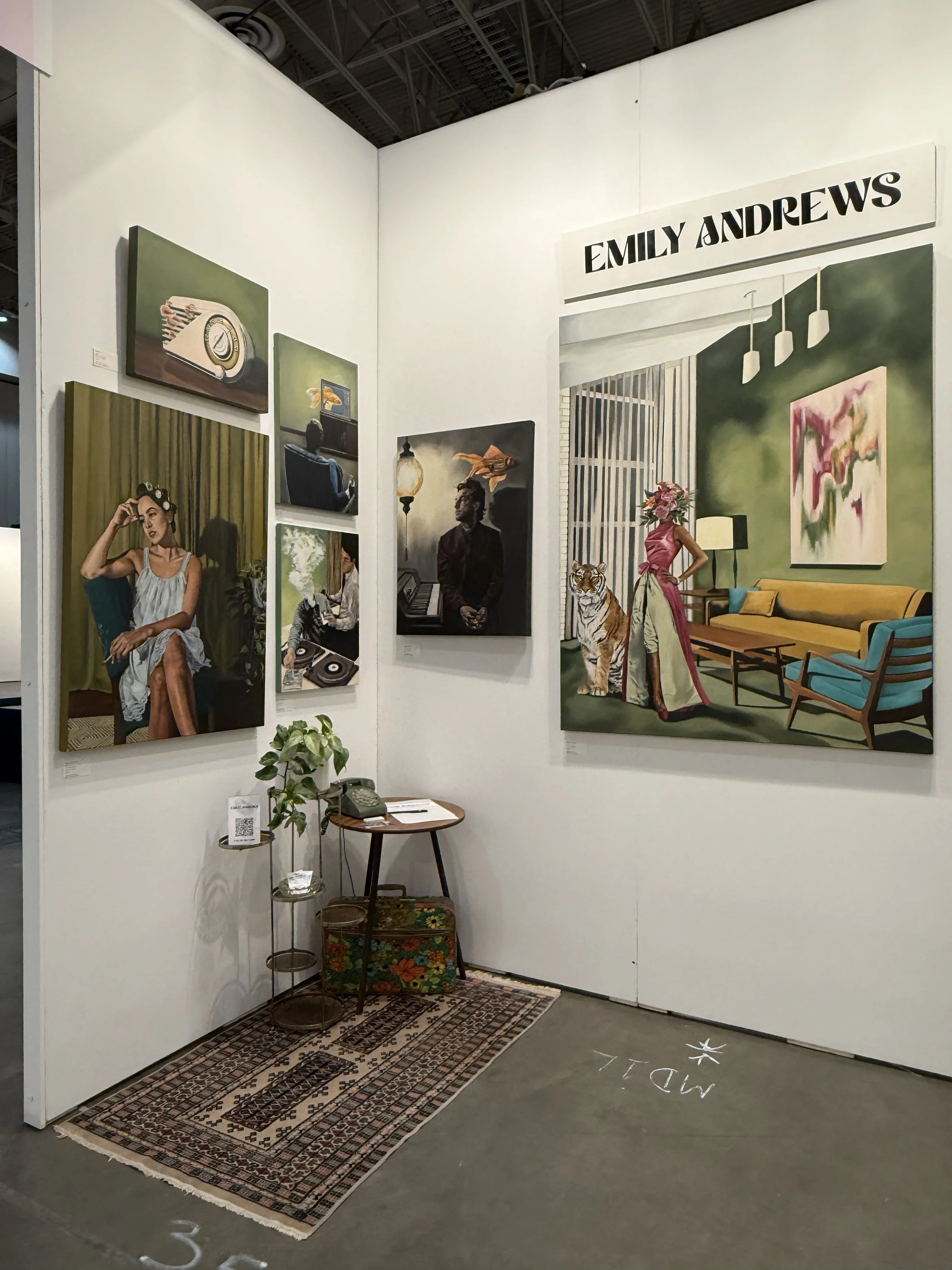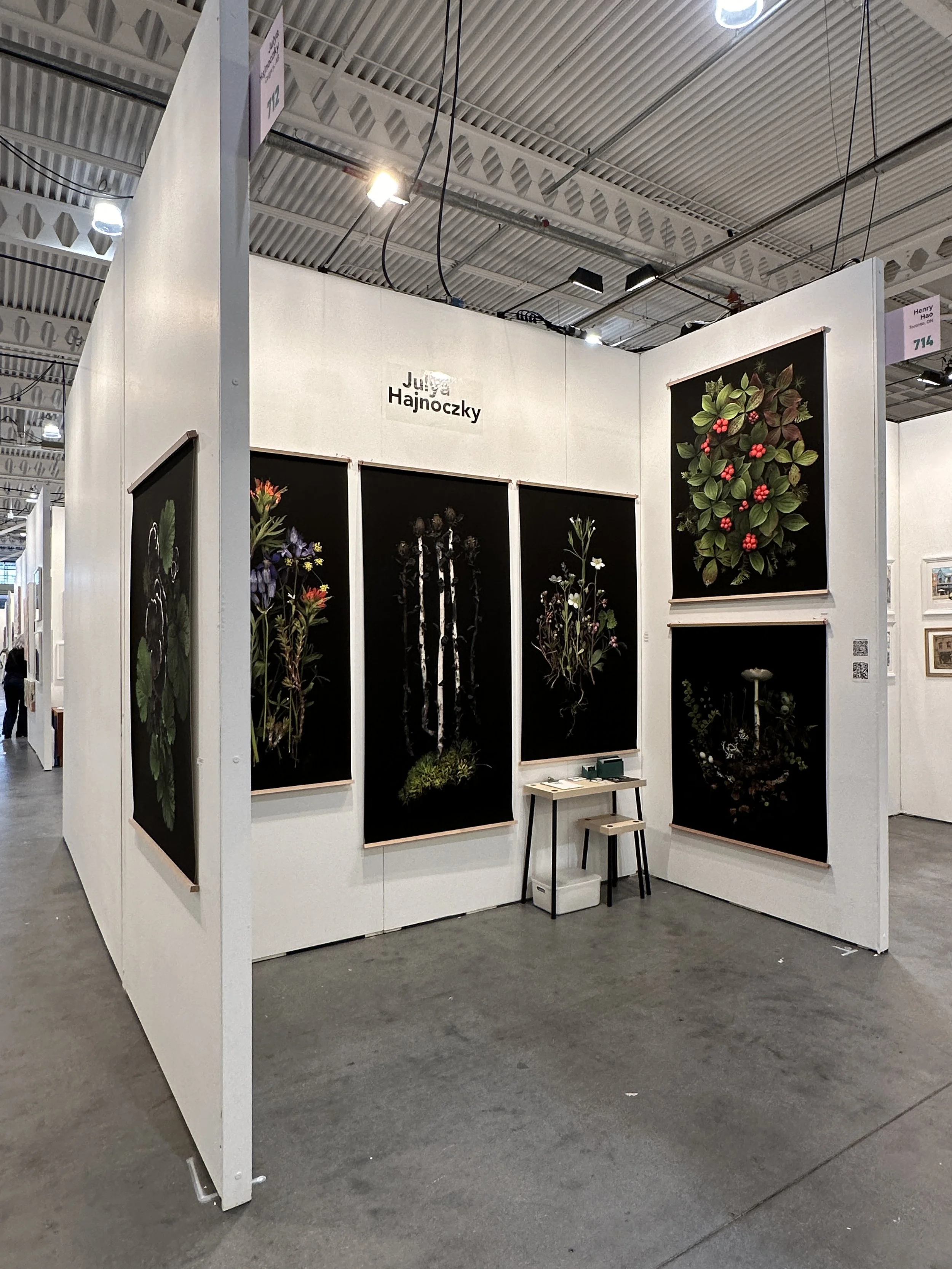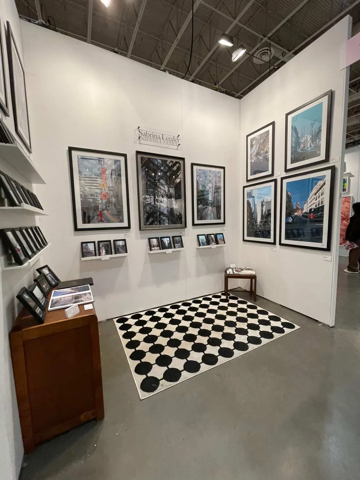 As artists, we tend to focus on the artwork (rightfully so), but your booth is a full environment. A small bench, a simple chair, a plinth, or even a side table can do a lot of heavy lifting. It gives you practical things like storage and a place to sit during long days, but more importantly, it helps shape the feeling of your space.