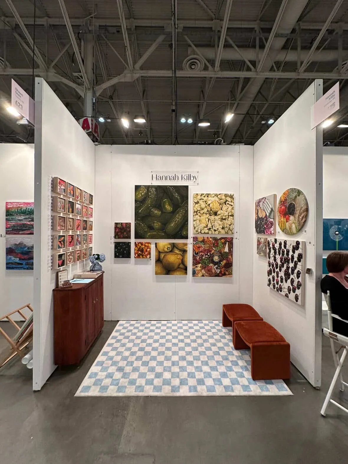 Full disclosure, I haven’t always advised artists to add furniture to their booths. However, more now than ever, I’m seeing the need to personalize, add character, and stand out in the crowd.