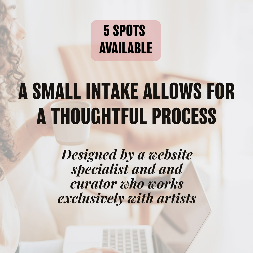 For a limited time, I’m opening 5 custom website design spots at special pricing. By reserving your spot now, you secure a future website build and can begin the project anytime within the next 12 months, when you’re ready.